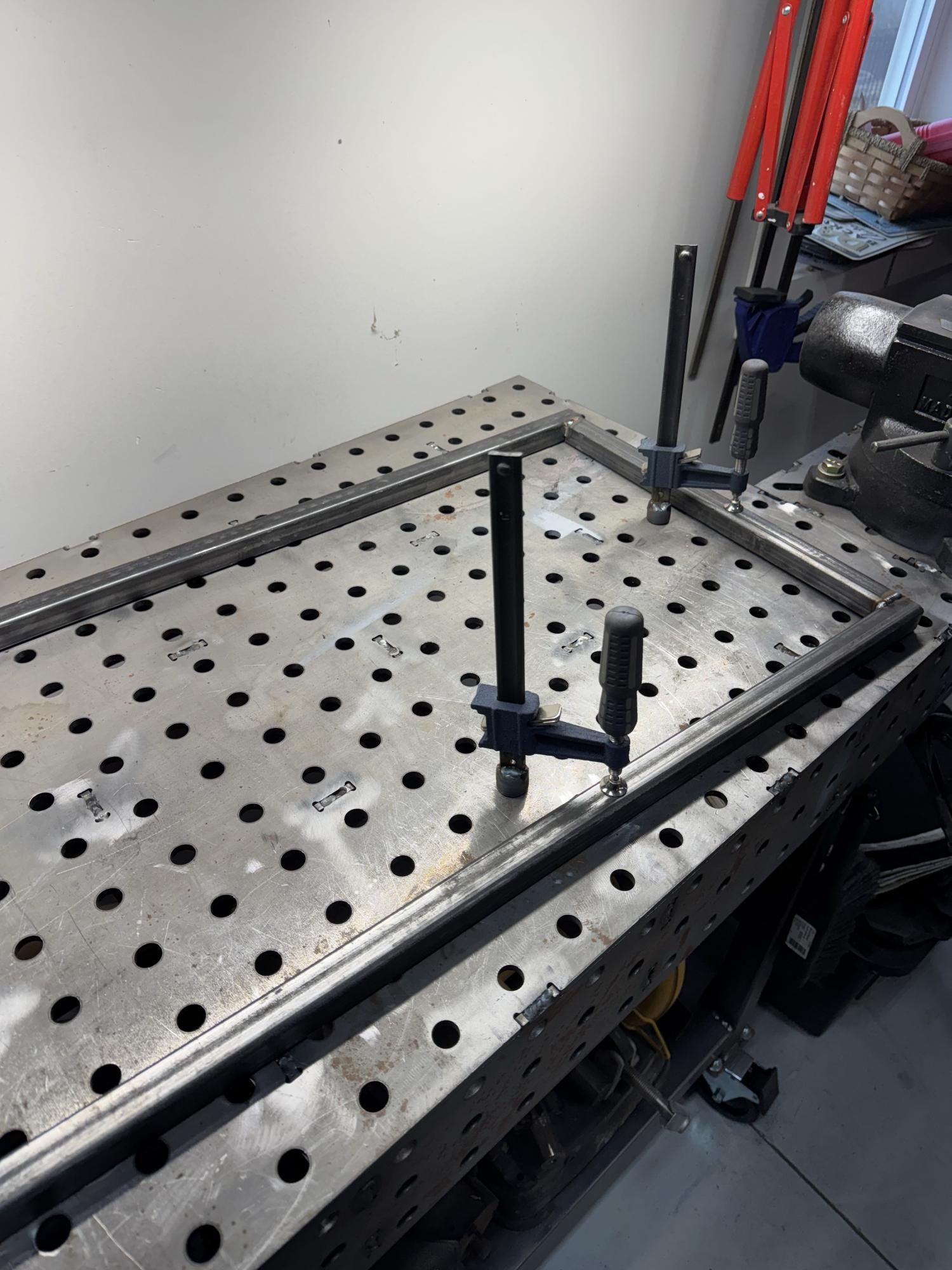 So a little more garage update. Got a new TIG machine but needed a place to put it. So now the plasma and TIG are on a tool box I already had. It needed all swivel castors on it and a way to hold a gas bottle. I made a frame out of 1” square tubing and got it all put together. Attachment 83466