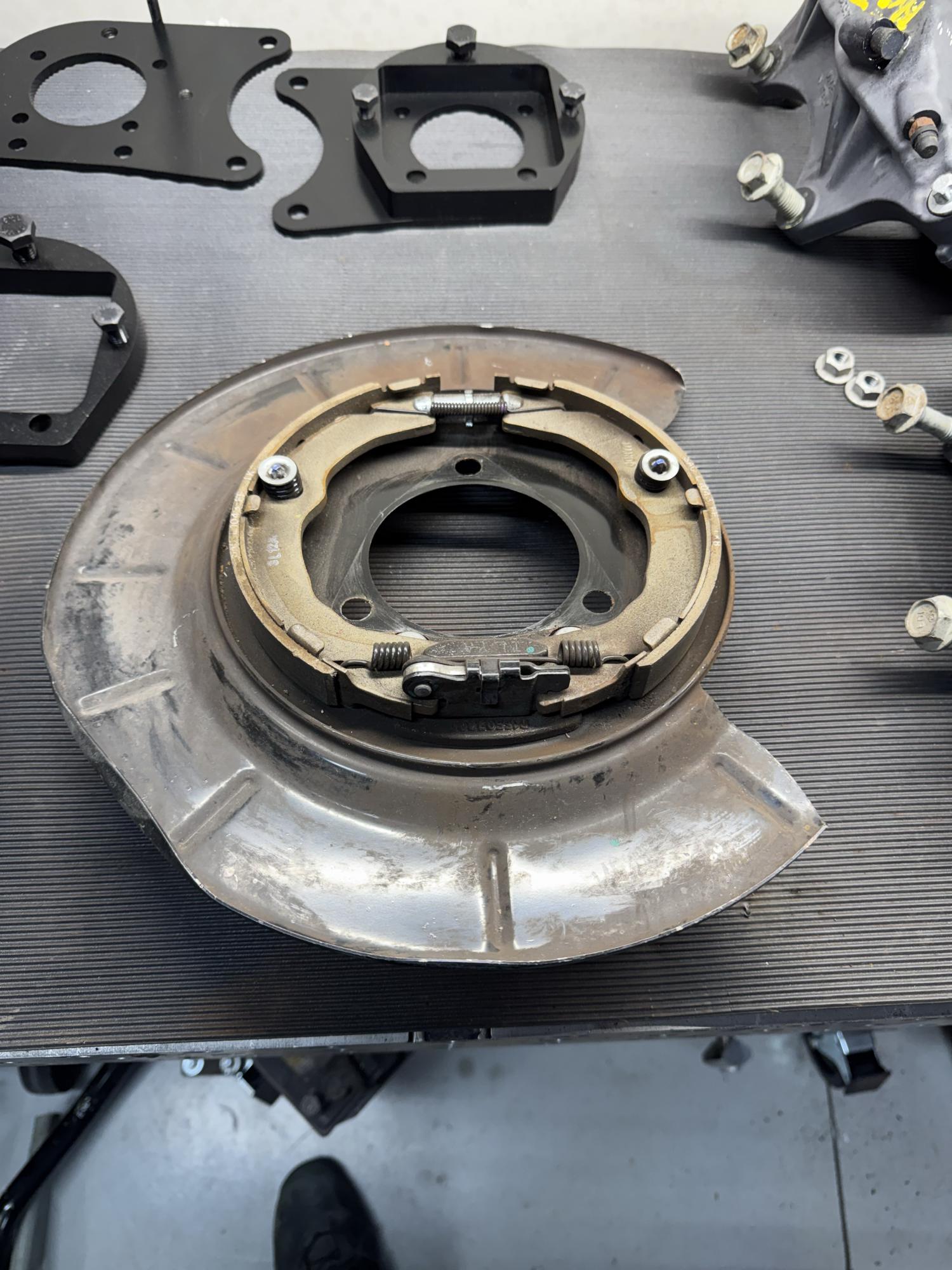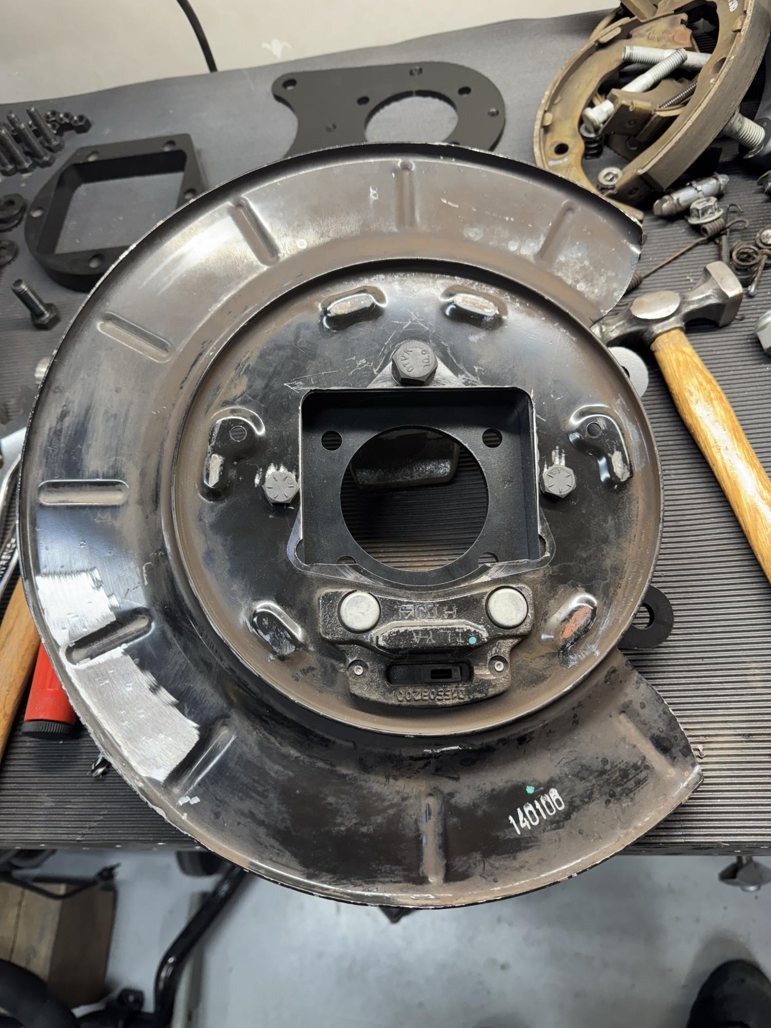Got the backing plates installed and the axles in. Mounted the rotors and the new calipers. Attachment 83561
