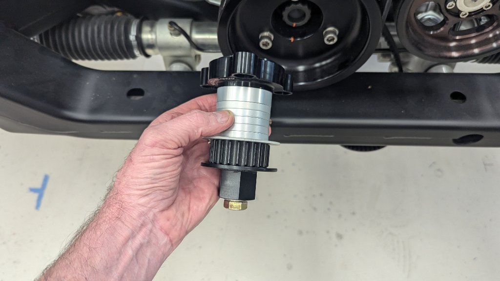 The original plan was to drive the dry-sump pump from a pulley behind the crankshaft pulley. However, a 4 stage pump will not fit here with a DSE subframe...without significant modification to the crossmember, engine mounts and the exhaust. Significant is an understatement. Aviaid has suggested this drive pulley which would mount on the front of the crankshaft pulley which would pull the pump forward. It doesn't completely solve the problem but makes the modification manageable. It will require that I build a custom mount for the pump but it seems doable. The fear with some I've spoken to is the torque on the crank, bearings and the pulley with this hanging off the front. Though some think it's no problem. DSE doesn't know of anyone running an LS7 with an external dry sump pump with their subframe. Appreciate opinions and any advice. Attachment 82289 Attachment 82290 |