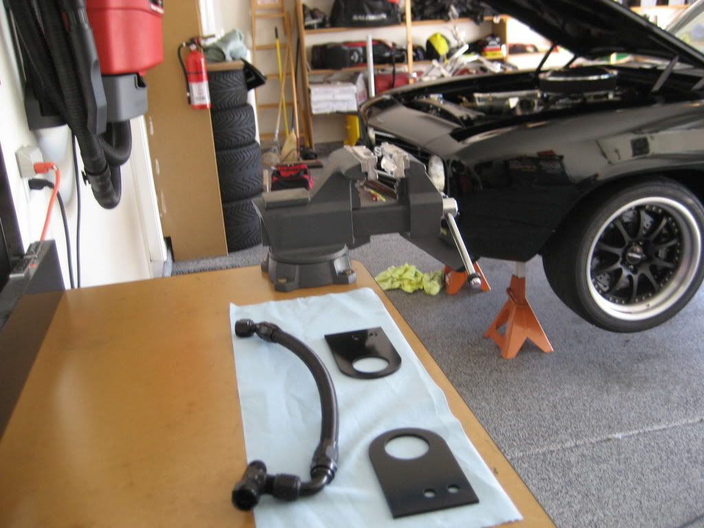 I plumbed it into the pressure side of the oil system. I found a trick three way an fitting from earls that allowed me to plumb it in on the return side of the filter. I had some tow hooks water jetted as they were needed for tech. They are probably a little over kill but I figured I'll use them to tie down the car once I get my enclosed trailer. I'm about an hour or two away from being ready to haul some ass around spring mountain raceway. It's going to be crazy. From what I hear, speeds in the 130-150 are obtainable down at least one straigtaway. It's a frickin pig right now. I haven't wiped down the frame and so on for a while. http://i200.photobucket.com/albums/a...1969/002-5.jpg http://i200.photobucket.com/albums/a...ck1969/004.jpg http://i200.photobucket.com/albums/a...1969/008-1.jpg |