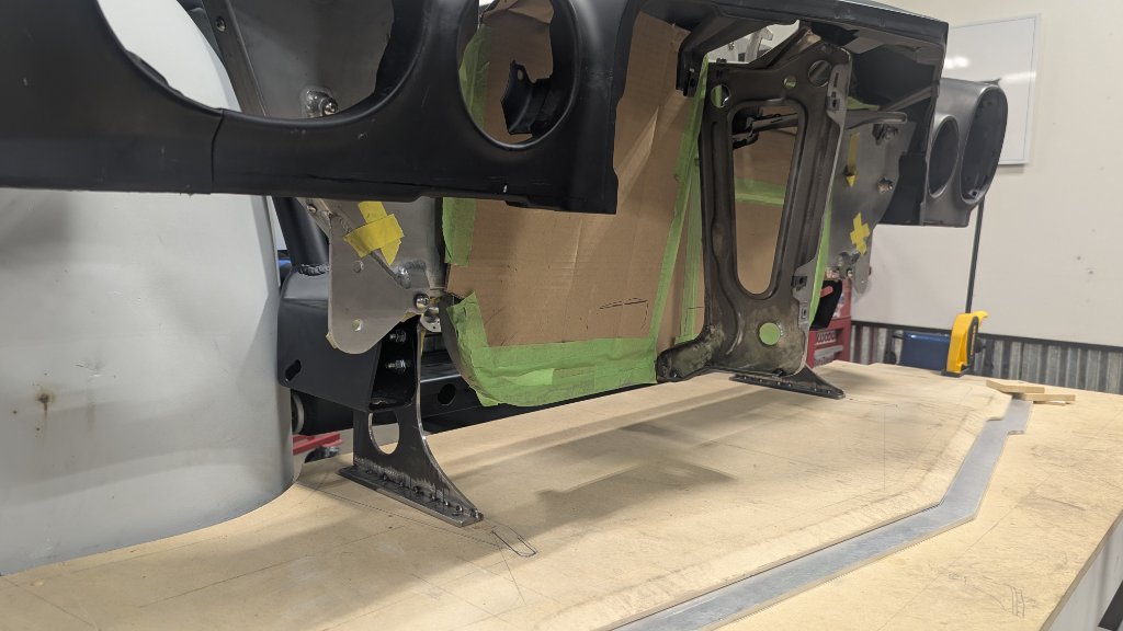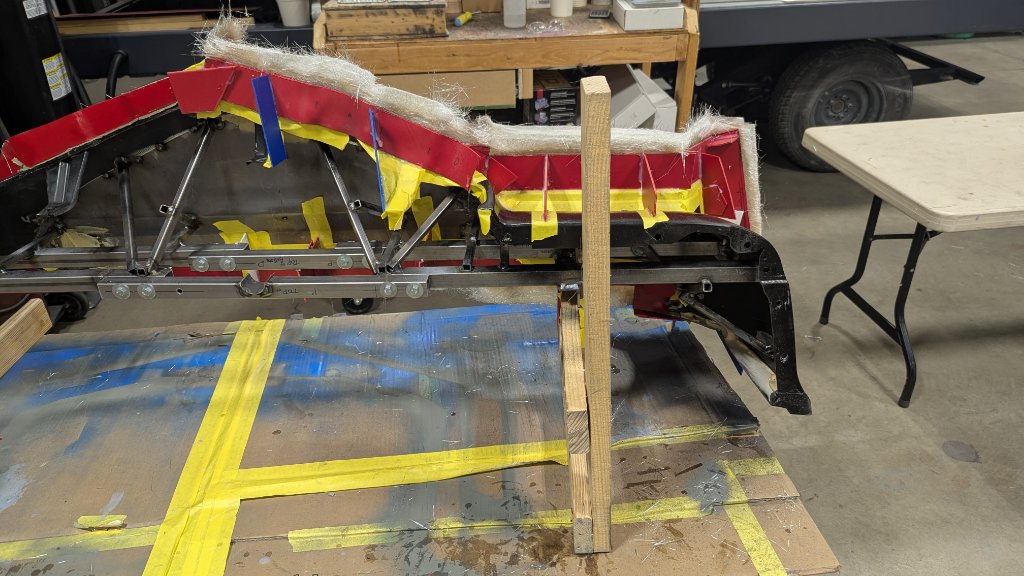 2 of the molds are complete now, here is the mold sections right after pulling them off the plug. Attachment 85808 The mold parts and the plug. Attachment 85809 The plug getting ready to go in the trash. I cut off some of the nose piece mounting brackets. I will use them on the final part, it will make sense later. I set the mold aside and forgot to take pics of it, will do next week. Attachment 85810 Threw the plug in the trash. That's always weird! I made this mold pretty darn stout and braced the heck out of it so it doesn't warp once I make the part and put it up on a shelf. Hopefully I'll never need it but if so, at least it should be as straight as the day I made it. Attachment 85811 Switched it up as Kenny was kind enough to offer one of his awesome fab guys to help me put the #1 header tube on the headers. The way I mounted my steering column put the shaft right through the middle of the #1 tube. American Racing Headers was kind enough to make me a header without that tube and sent me a box of scrap bends along with the seal and collector. First class people. We spent a day getting this thing right. Couldn't have done this without Adam's help. Next level talent. Attachment 85812 Header done ready for some scotchbrite. Attachment 85813 Kenny spent the weekend with me working on the exhaust. Another next level talented dude. 35 years of badassery.... Parts ready for cut'n. Attachment 85814 Attachment 85815 We got the it built to the X this weekend. Attachment 85816 Started prepping for the mufflers and the rear, figured we would notch the fuel tank for cleanlyness. I decided to run 3" all the way back, I know many go 2 1/2" after the mufflers but I don't have experience with that, so just made way for the 3". Attachment 85817 |