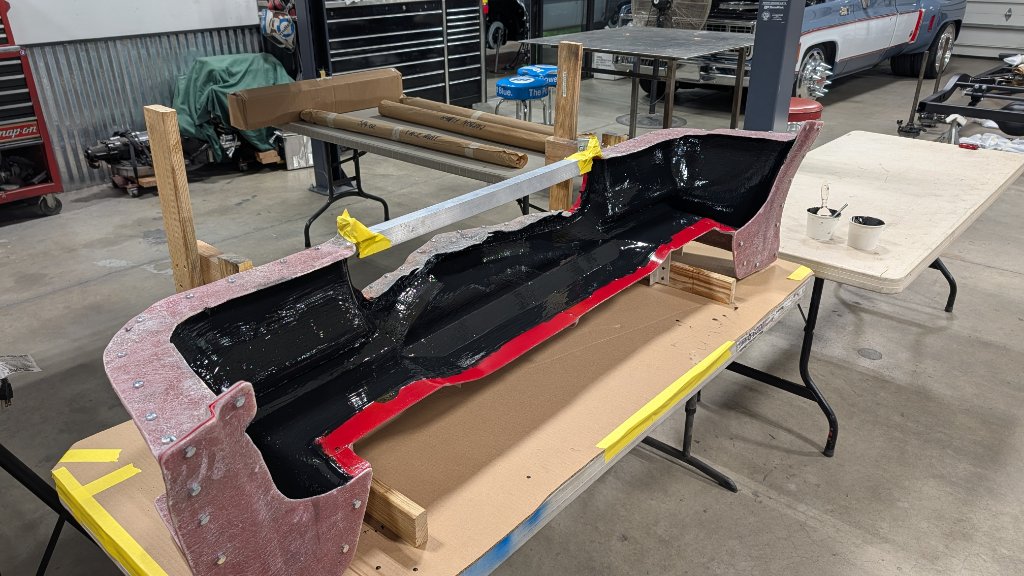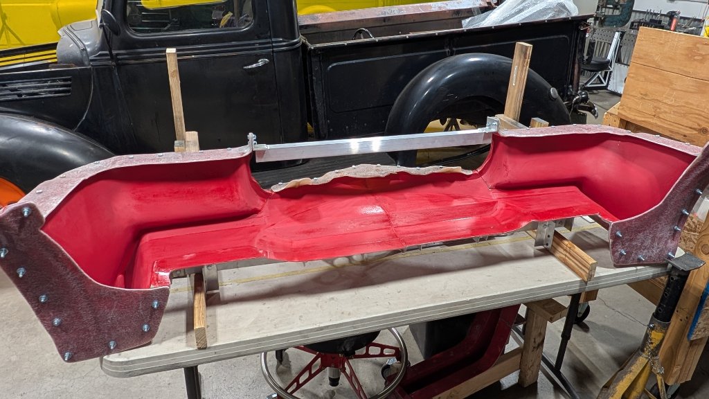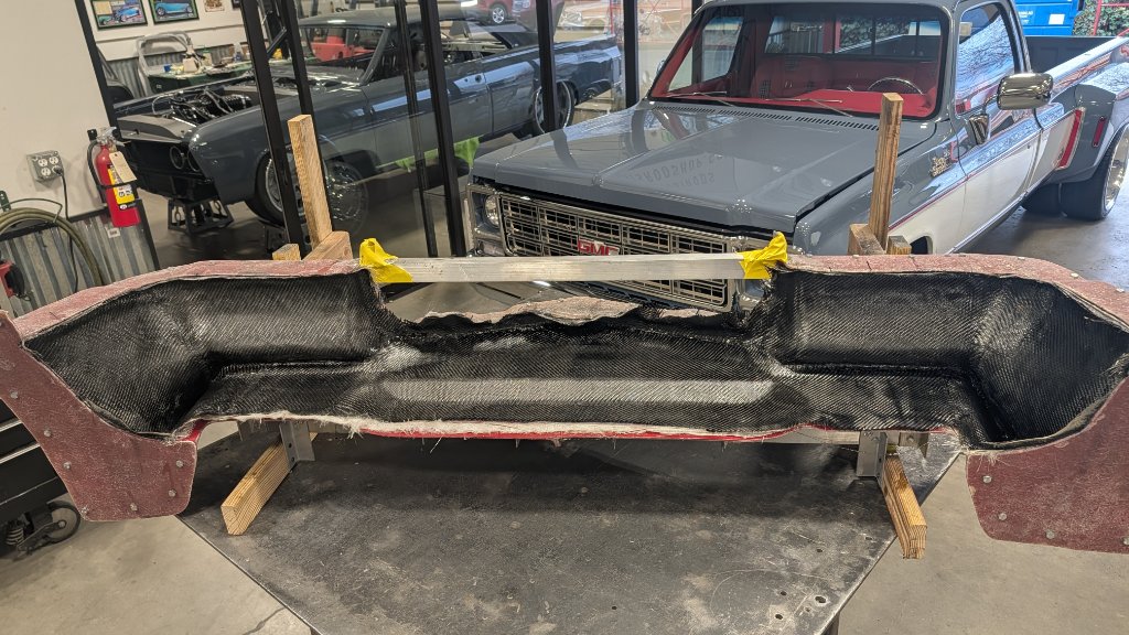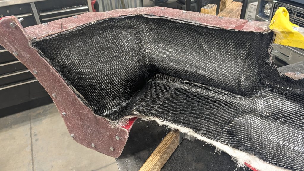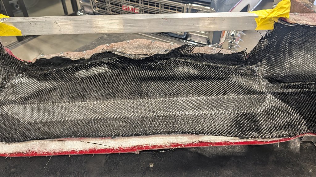 Attachment 85977 Sprayed PVA Mold Release. Attachment 85978 Brushed on the gelcoat. No great way to accurately spray it with this mold, just to many tight areas to insure a consistent layer. Brushing is an OK alternative but will have pin holes. This thing will get body-worked during paint so no worries. Attachment 85979 First layer of 3/4oz mat fiberglass and 3/32" glass fibers in the tight corners. I also added a small piece of 3/8" aluminum in the outer most section for the splitter to bolt up to later. Buried it in with the carbon Will drill and tap. Didn't get pics of that as I was elbows deep in resin. Attachment 85980 Added the carbon. Attachment 85981 Attachment 85982 This will sit in the mold for a couple weeks. More to come soon. Hope everyone has a wonderful Christmas and Holiday!! Attachment 85983 |