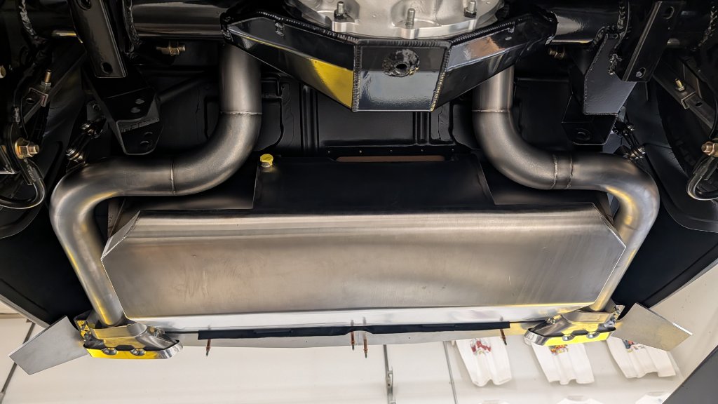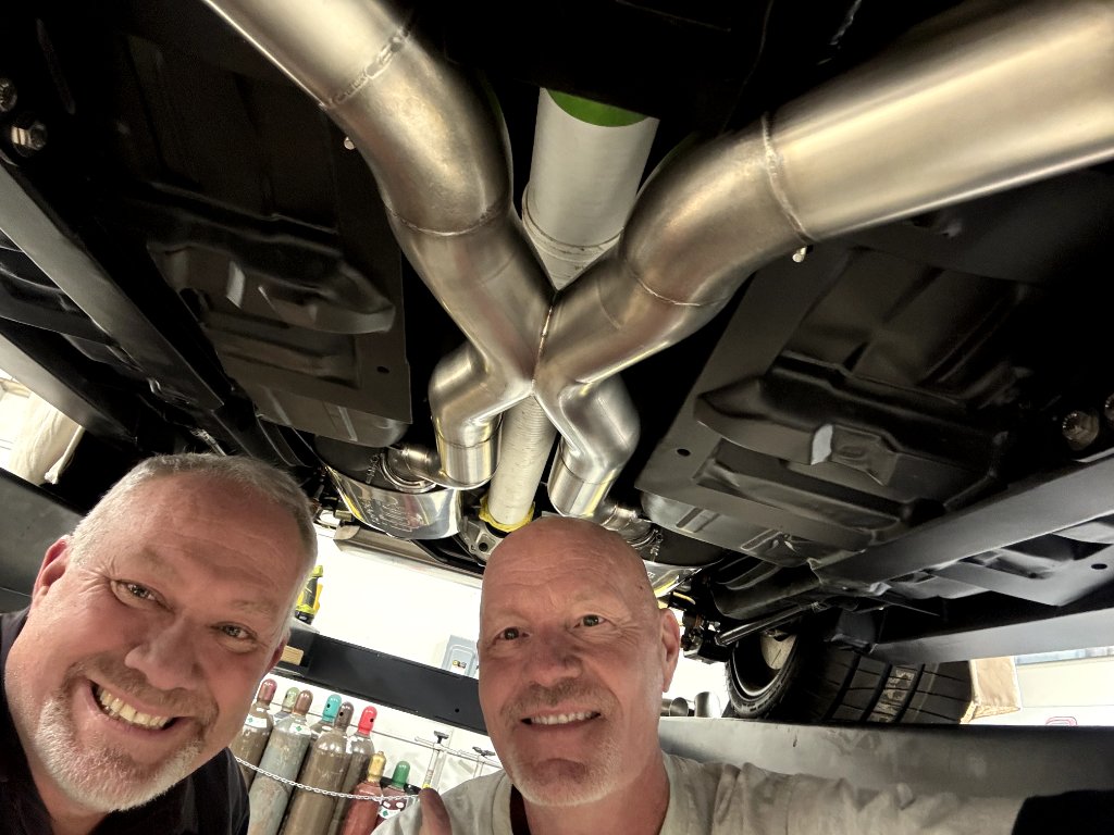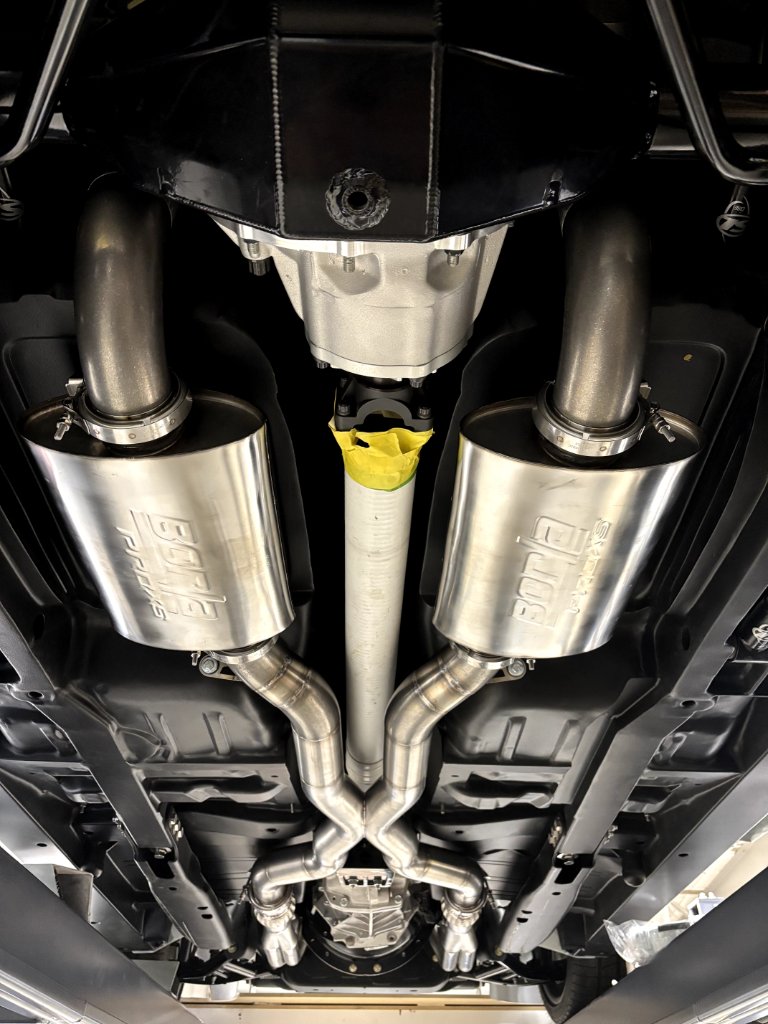 Attachment 85921 Attachment 85922 Attachment 85923 Yes, that's 3" irrigation drain pipe subbing in for a 4" driveshaft. Ha!, use what you got! Attachment 85924 All buttoned up to the rear-end. We will continue out the back next week. Attachment 85925 I'm so thankful for Kenny Welch of Kenny's Rod Shop for helping me for the last 2 weekends get the exhaust looking real nice. So awesome to be around dudes with this level of talent. On Kenny's advice.... Though I did buy a Borla Universal kit, he likes to use sanitary pipe elbows from an industrial piping supply house. Super clean way to have perfect flat surfaces at exactly the right angle. So, I didn't need the Borla kit but I'll find a good home for it - lesson...ask the experts before ordering! When the dust settles, I think the cost of those pieces and a couple straight sections is less than the Universal kit but the fit is sooo tight! Highly recommend! Attachment 85926 |