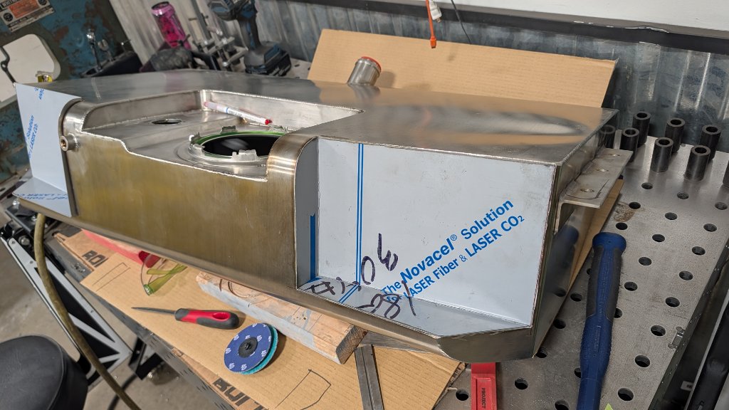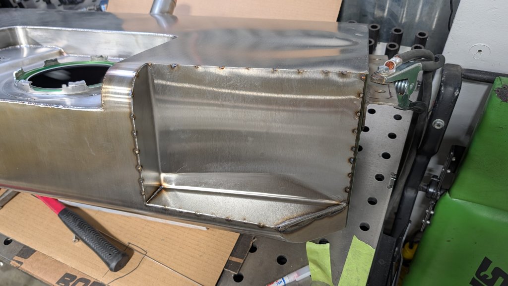 Gas tank needed significant notching. Attachment 85966 Attachment 85967 Attachment 85968 Added some bracing to support the tank mounts that I did long ago. Attachment 85969 Attachment 85970 Attachment 85973 Attachment 85971 I know it looks real close, it is! Only about 1/4" but I'm going to wrap the entire exhaust so it should be fine. Once I finish the aluminum surround/side skirt around the exhaust tips (for sure it won't hang down as it is now - just haven't inked it yet), I'll figure out how the exhaust attaches. Attachment 85972 |