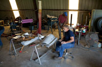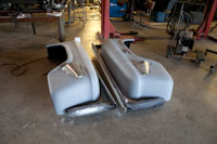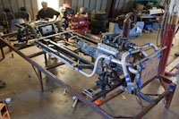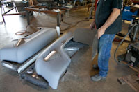 To answer another question, about the rear end. We're developing this adapter to convert the Corvette transalxe into a stand alone diff. I'm showing the C5 adapter on a C6 Rear. I'm running the C5 in the truck but I don't have a C5 model. We'll be offering this shortly after SEMA and we've beaten the crap out of the prototype. It will have several different mounting positions and will take almost all the torque the normally destroys a C5 rear diff into the plate then straight into the frame. http://www.hotrodjim.com/immages/pro...te/02/s-12.jpg http://www.hotrodjim.com/immages/pro...te/02/s-13.jpg BTW Intercoolers are done http://www.hotrodjim.com/immages/pro...te/02/s-21.jpg Rear scoops, mud and water gard for the intake and access pannel for the rear fenders are going together nicely. We'll also be installing one of the power cells for the ISIS wiring system in here too. http://www.hotrodjim.com/immages/pro...te/02/s-14.jpg http://www.hotrodjim.com/immages/pro...te/02/s-15.jpg http://www.hotrodjim.com/immages/pro...te/02/s-16.jpg http://www.hotrodjim.com/immages/pro...te/02/s-17.jpg http://www.hotrodjim.com/immages/pro...te/02/s-18.jpg http://www.hotrodjim.com/immages/pro...te/02/s-19.jpg http://www.hotrodjim.com/immages/pro...te/02/s-20.jpg Also I need to point out two of the biggest helps we've had here at the shop. Terry the old guy upfront is a retired body guy. That means he hammers out dented metal and repairs it, not just makes you replace everything with new metal then bondos over everything. His skills have been in valuable here and we all take a lesson when he starts to talk, most of the time. Kendall Burleson is in the background working on a brace for the inside of the cab. Kendall is the owner of Adrenaline Rides Garage in San Antonio and has been in the Automotive and Air Plane fabrication industries for over 30 years and brings his considerable sheetmetal, TIG and custom interior skills to our shop when he's not racking on his several projects. They convert J bodies (Cobalts and the like) into RWD Drag cars. We're in the processes of designing their first Pro-Touring style conversion with C6 Corvette suspension. With out tight time table Kendall has volunteered some of his time doing what he dose best, everything, lol. http://www.hotrodjim.com/immages/pro...te/02/s-24.jpg |