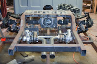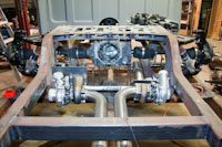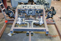Updates People with big feet - (Darren, Brianne, and I, well everyone but Billy really) our feet wouldn't fit with the last pedal system so we rear arranged a few things and moved them under the floor. Clutch http://www.hotrodjim.com/immages/pro...ate/02/s-2.jpg http://www.hotrodjim.com/immages/pro...ate/02/s-3.jpg Brake http://www.hotrodjim.com/immages/pro...ate/02/s-4.jpg http://www.hotrodjim.com/immages/pro...ate/02/s-5.jpg Intercooler caps are done and out to the cutter with the brake parts http://www.hotrodjim.com/immages/pro...ate/02/s-1.jpg TURBOS!!!! Looking evil. and the tubing for the compressed air is in too. All mandrel bends in aluminum. It'll start 2.00" at the turbo after a few gentle 45 degree turns it goes up to 2.25" up over the front tire turns into 2.5" and then goes into the intercoolers. http://www.hotrodjim.com/immages/pro...ate/02/s-6.jpg http://www.hotrodjim.com/immages/pro...ate/02/s-7.jpg http://www.hotrodjim.com/immages/pro...ate/02/s-8.jpg http://www.hotrodjim.com/immages/pro...ate/02/s-9.jpg http://www.hotrodjim.com/immages/pro...te/02/s-10.jpg Stack gauges are in. I've always used Autometer and with Stack getting bought out by them I think Autometer will learn something from Stack. WOW the are some of the best built gauges I've ever seen. Aluminum housings, electric steeper motors full 270 degree sweeps and the tack. Oh the tack, this is all built in, 2 programmable gauges, speedometer, odometer, and sequential shift light. Just wow, Huge thanks to Stack for these bad boys and the simple black and white fits the plane theme perfectly. http://www.hotrodjim.com/immages/pro...te/02/s-11.jpg Later -Russell |