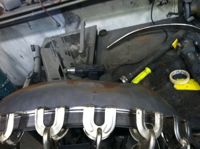 Got a little accomplished over the weekend. Between blowing a seal on the two post lift hydro cylinder and almost dumping the car, and then my $20,000 plasma cnc machine crashing on me, it was a rather eventful weekend. Excuse oil dry in the pictures. When the cylinder blew, it sprayed everything within 30 feet with hydraulic oil. So we has quite a mess of oil dry everywhere trying to clean it up.