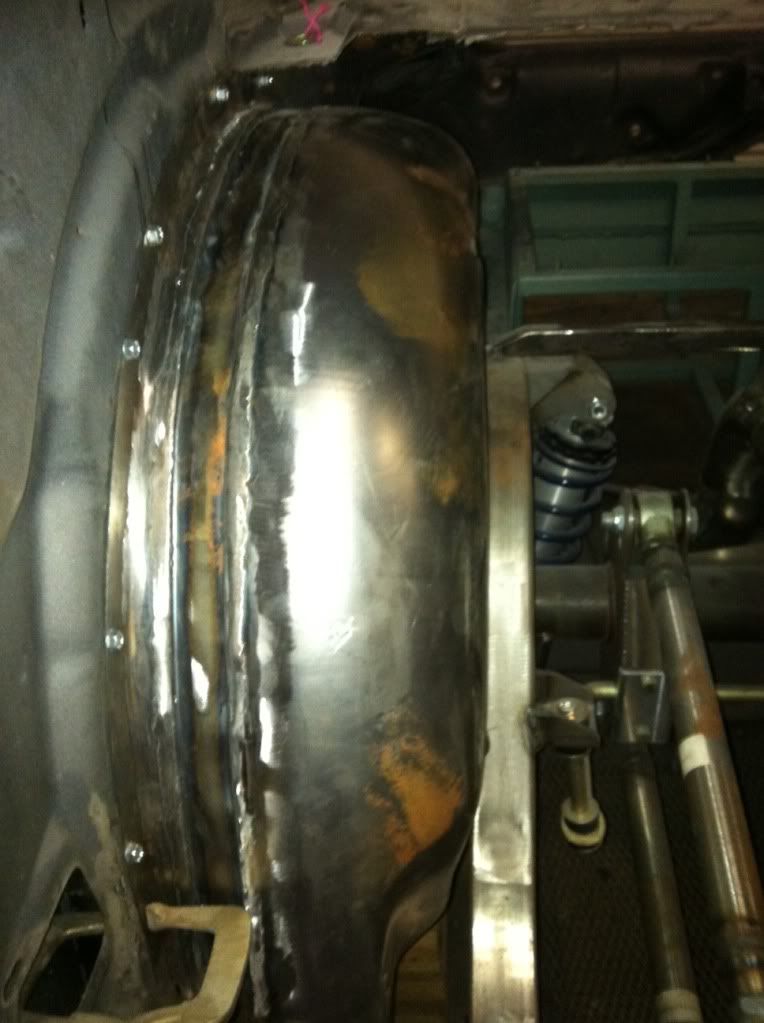 Any on to the details. I have been a little worried about structural rigidity of the body itself, with it no longer having the floor structure and all the factory cross members and bracing that are apart of the floor. So I cooked up the idea to reinforce the rockers. Fired up the plasma and cut a couple pieces of 1/8" plate to match the rocker from toe panel to where they meet the new morrision rear clip. Fully seam welded on the top and at the bottom at the lower rocker area. Then is that wasn't enough, took a couple pieces 1.75" DOM tubing , notched the ends to meet up with the subframe connectors made earlier and then welded them off to the new rocker structure. Should be plenty strong now. Only thing left to do is make a body mount plate for the rear subframe mount and get it on the car. Also got a 1 square tubing structure built and welded up for the fuel cell http://www.fletcherscustoms.com/copp...al_rocker4.JPG http://www.fletcherscustoms.com/copp...al_rocker3.jpg http://www.fletcherscustoms.com/copp...al_rocker2.JPG http://www.fletcherscustoms.com/copp...mal_rocker.JPG http://www.fletcherscustoms.com/copp...l_cellcage.JPG |