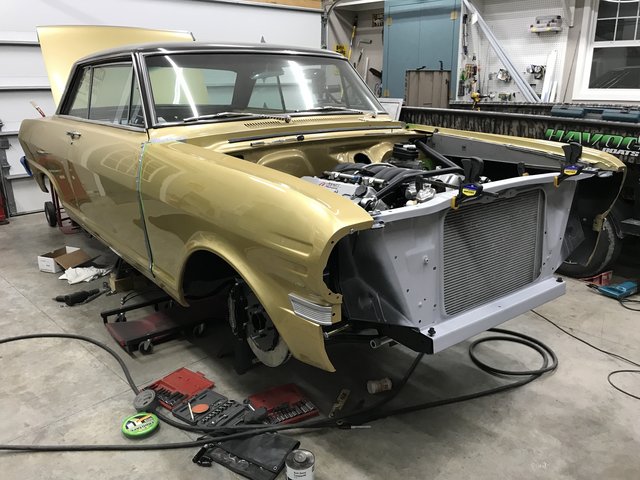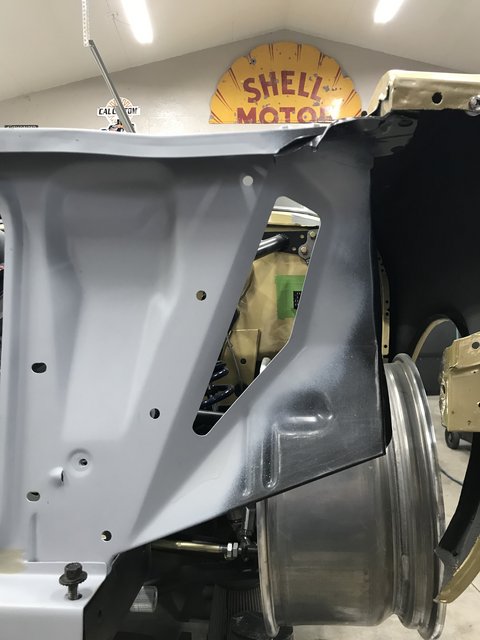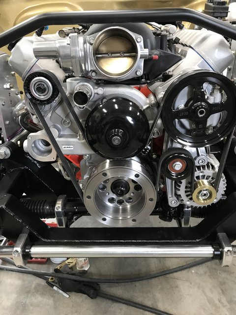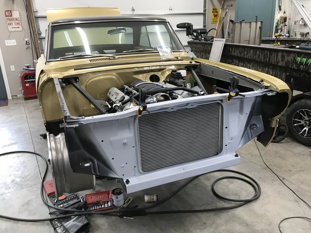 Marty, The wires are stretched out down and across the floor of the car at the moment. Once I get them correctly routed the will come out the fuse panel and loop up and over to the dash area with the exception of a few going to the rear of the car. I have actually contemplated flipping the fuse box so they come out the top. I finished up the pulleys and the serpentine belt. https://i.postimg.cc/QtschZnT/EADC00...2-F09373-F.jpg Then it was time to test fit the core support and mock up the front end. It’s still in primer until i see what other mods will be needed. It will all come back a part a few more times yet. Took several attempts of shimming the fender supports to get the spacing close. I have been test fitting the radiator and figuring out a mounting strategy. The original radiators bolted directly to the core support with no form of isolation or vibration control. I want to come up with a better solution. If anyone has some mounting options to share I would like to see them. https://i.postimg.cc/t4Khvx3D/72-C54...866-C5-CB0.jpg https://i.postimg.cc/FK00MHGv/35-D4-...062-EC0-A1.jpg |