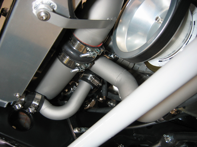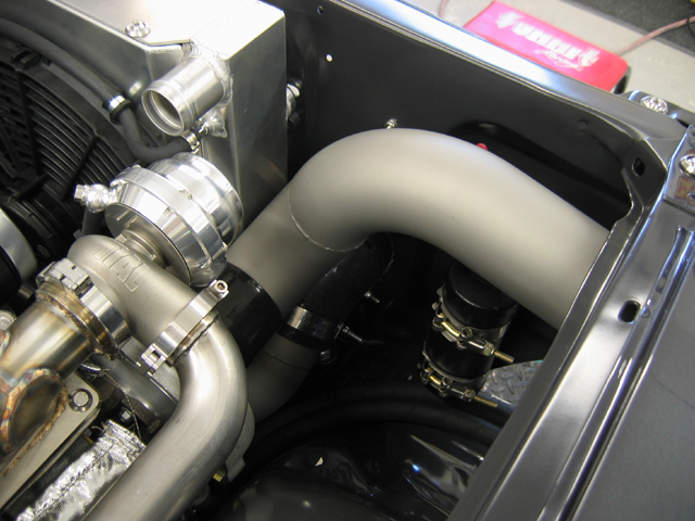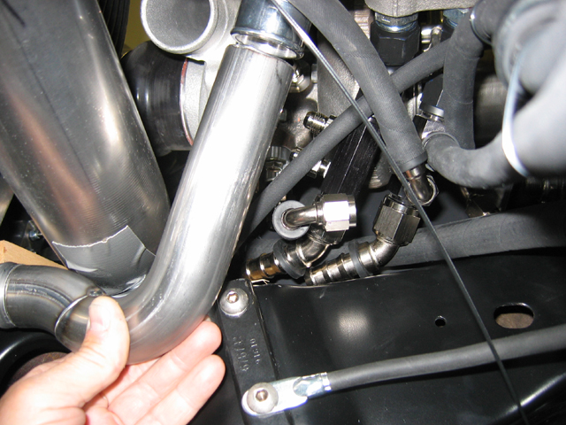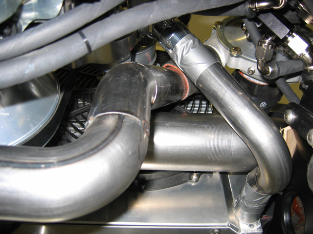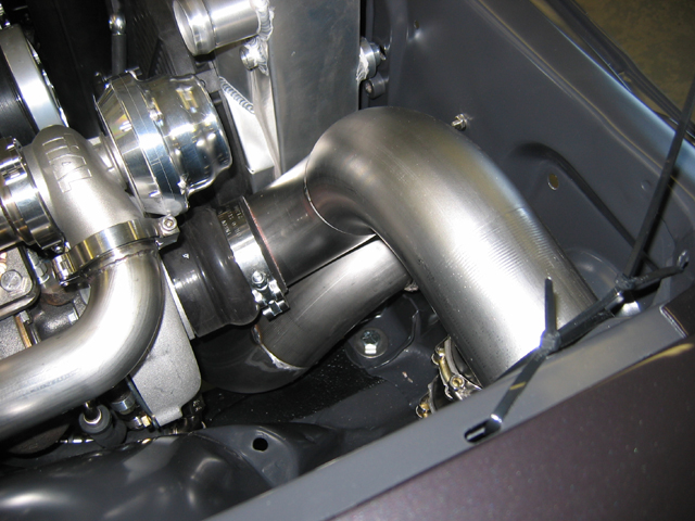 This is the passenger turbo outlet tube squeezing around the intercooler and radiator tubes, heading for the drivers side and intercooler inlet. http://www.camcojb.com/temp/malitude 519.jpg http://www.camcojb.com/temp/malitude 520.jpg http://www.camcojb.com/temp/malitude 522.jpg Jody |