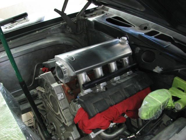 So as anticipated the hood wont clear without some modifications. The bulk of the intake fits perfect, but the TB is a bit too high and forward to clear the scoop inlet on the AAR hood. Thankfully, we have some room to drop the TB back and down, so now we have some idea of what we need to move around. I will still likely need to modify the hood some, but hopefully we can move some stuff around to lessen the extent of the hood mods. We'll see....