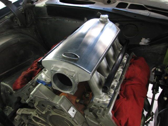 About 2 years ago I contacted Jeff Davis at Precision Metalcraft about doing a custom intake for the modern HEMI. Through a friend, we sent a stock 6.1 HEMI intake to him so he could take all the measurments he needed etc and figure out some designs. So he came up with a design and made a prototype intake. Since my whole k-frame is raised, hood clearence is a concern. I know the stock intake will fit but the one Jeff designed is a tad higher. Jeff is such a nice guy, so I asked if he would be willing to loan me the protype to test fit and he said "no problem". It wicked cool and its a hell of a nice piece..... http://i229.photobucket.com/albums/e...I/IMG_5552.jpg http://i229.photobucket.com/albums/e...I/IMG_5553.jpg http://i229.photobucket.com/albums/e...I/IMG_5538.jpg |