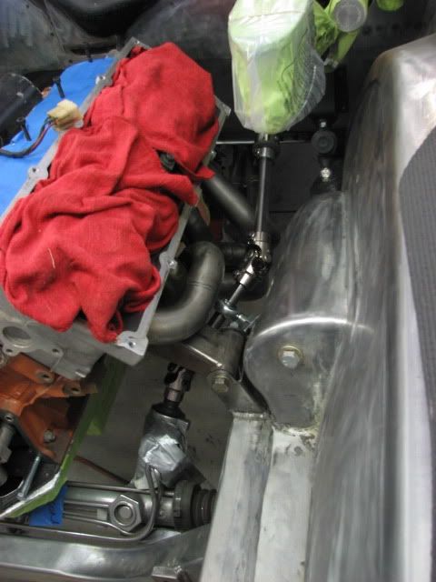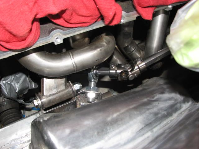 Then I got the steering linkage figured out. The angle on the middle joint is a little tighter than I wanted but I dont feel any bindng etc. I still have some room to fine tune it and still get decent clearence to the headers