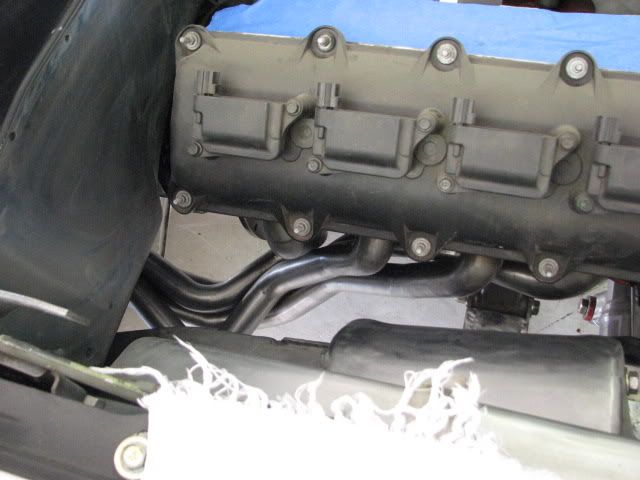 Then it was time for the headers. I went back and forth on just doing shorties, but decided to just try the LT and see what happens. Since we raised the motor 1.5 inches, I was concerned about them hitting the floor.....and guess what.... they did. Unfortunately TTI wont allow me to return them since they are uncoated, so I just decided to keep them and modify whatever I need. I cut the mount flanges off and they fit but are pretty close to the floor. My plan is to just modify the floor to get some more space. They tuck up real nice and dont sit below the frame rails which is cool.