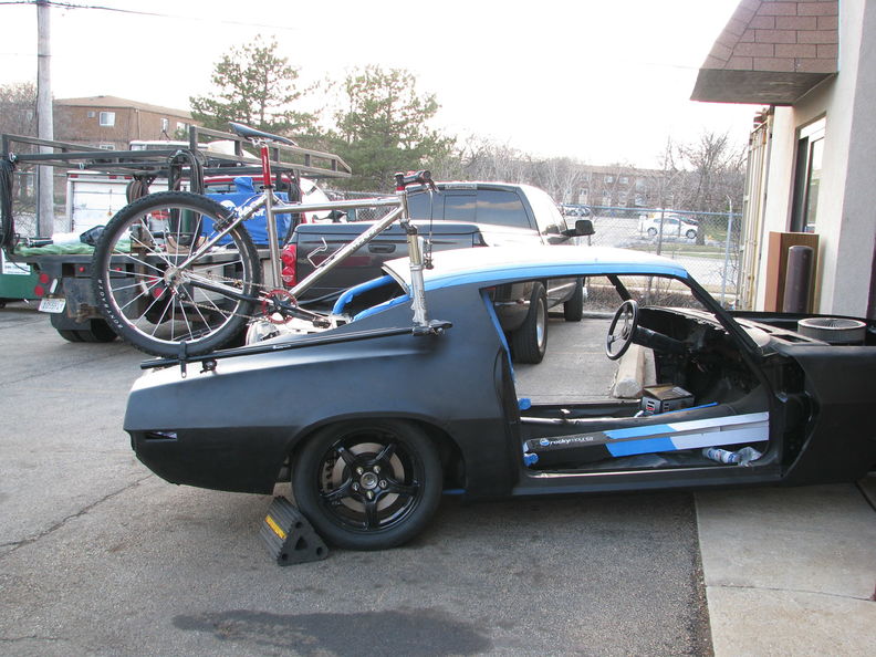 2012 04-30 Update - Rocky Mounts www.rockymounts.com www.2ndchancecamaro.com This post is all about my first love (other then my family of course). I am a die-hard mountain biker it is very hard for me to miss a ride in the summer due to a show schedule. The only way to solve this was either to buy a Lotus and order a rack from Unique Racks http://uniquerack.com so I could have a cool car with a bike rack on it. But it didn't solve the problem. I wouldn't be able to do any of the Good-Guys shows (www.good-guys.com ) since the Lotus would be was newer then 1972. Warning: the following pictures may not be suitable for immature audiences. author: David Chooey So here is my dream bike and I am trying to figure out a way to mount the bike on the side of the car and wondering how it would look. I know most people would put it on the back but that is way to boring for me. Now that I determined the location all I have to do is find the best looking tray on the market. When I was in Colorado at Cankworx ( www.crankworx.com ) I walked by the Rocky Mounts Display ( www.rockymounts.com ) and saw the perfect tray. I wanted to buy one at the show but I figured Southwest wouldn't let me carry it on the plane home. I ordered up the tray the day I got home and started mocking it up on the car. http://garagescene.net/_data/i/uploa...a058bd7-me.jpg You can see that the tray's has a very thin profile and looks very clean on the side of the car. I can't wait to order a set for my daily driver. http://garagescene.net/_data/i/uploa...1d44c65-me.jpg http://garagescene.net/_data/i/uploa...61d7973-me.jpg Warning: the following pictures may be offensive and not suitable for automotive purists. author: David Chooey I hauled the car back to High Speed Welding ( www.highspeedwelding.com ) and showed Dennis and Joe my idea. Good thing for me both of them thought it was a cool idea. We have two goals make it removable so I can run the car through a car wash and to try not to disturb the original lines of the car. http://garagescene.net/_data/i/uploa...ddaffac-me.jpg When the tray is removed all that will be left is two stainless steel bungs on the quarter. Kenny will be making a cap to cover them up when the Rocky Mount tray is removed. http://garagescene.net/_data/i/uploa...1cb08b3-me.jpg http://garagescene.net/_data/i/uploa...085412c-me.jpg Since this hole was already on the side of the car we choose to use it for the rear mount. http://garagescene.net/_data/i/uploa...019b21d-me.jpg http://garagescene.net/_data/i/uploa...3f4cce7-me.jpg Here is the finished product. I AM RIGHT HERE Just in case you didn't read the warning the first time. Warning: the following pictures may be offensive and not suitable for automotive purists. author: David Chooey [IMG]h http://garagescene.net/_data/i/upload/2015/12/20/20151220210737-f577b0b4-me.jpg[/IMG] http://garagescene.net/_data/i/uploa...2491189-me.jpg http://garagescene.net/_data/i/uploa...a0295ce-me.jpg I am well aware that most people think I am crazy and that is okay and here is my thoughts on that. I hear parents every day telling me that all there kids do is play video games. Then I point out that most adults sit on the coach at watch Sports and the latest TV Series. So as parents they are no better. So get out and do something active instead of telling your kids when I was young we never watched TV we were out playing. Live life guys and gals as this may be the only one you get. Pictures hosted by www.garagescene.net I also need to thank my buddy Rick for showing me pictures of the Lotus Bike rack years ago. Without those pictures I may have mounted on the back of the car and that would have just been boring. |