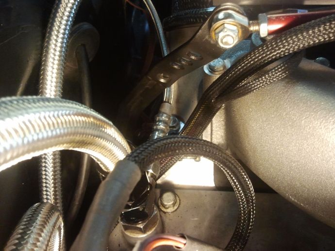 The throttle has a good feel and does not come on to quickly. I wanted to make sure I had lots of travel so it would be easier to control the car when rolling the throttle on. Here are some pics of the mods on the lever arm. The arm measures about 9 inches from the pivot point on the firewall, to the pivot point on the connecting link. http://i1048.photobucket.com/albums/...ps2f395665.jpg http://i1048.photobucket.com/albums/...psee172ac5.jpg http://i1048.photobucket.com/albums/...ps5cd34586.jpg http://i1048.photobucket.com/albums/...ps4dd54e95.jpg http://i1048.photobucket.com/albums/...psb98b6a61.jpg I made the lever arm just long enough to get the full range of travel on the TB. This worked out good... and the throttle has a good feel (not to fast... not to slow). I made sure I had plenty of clearance through the whole range of travel so the arm would never get hung up and get stuck. |