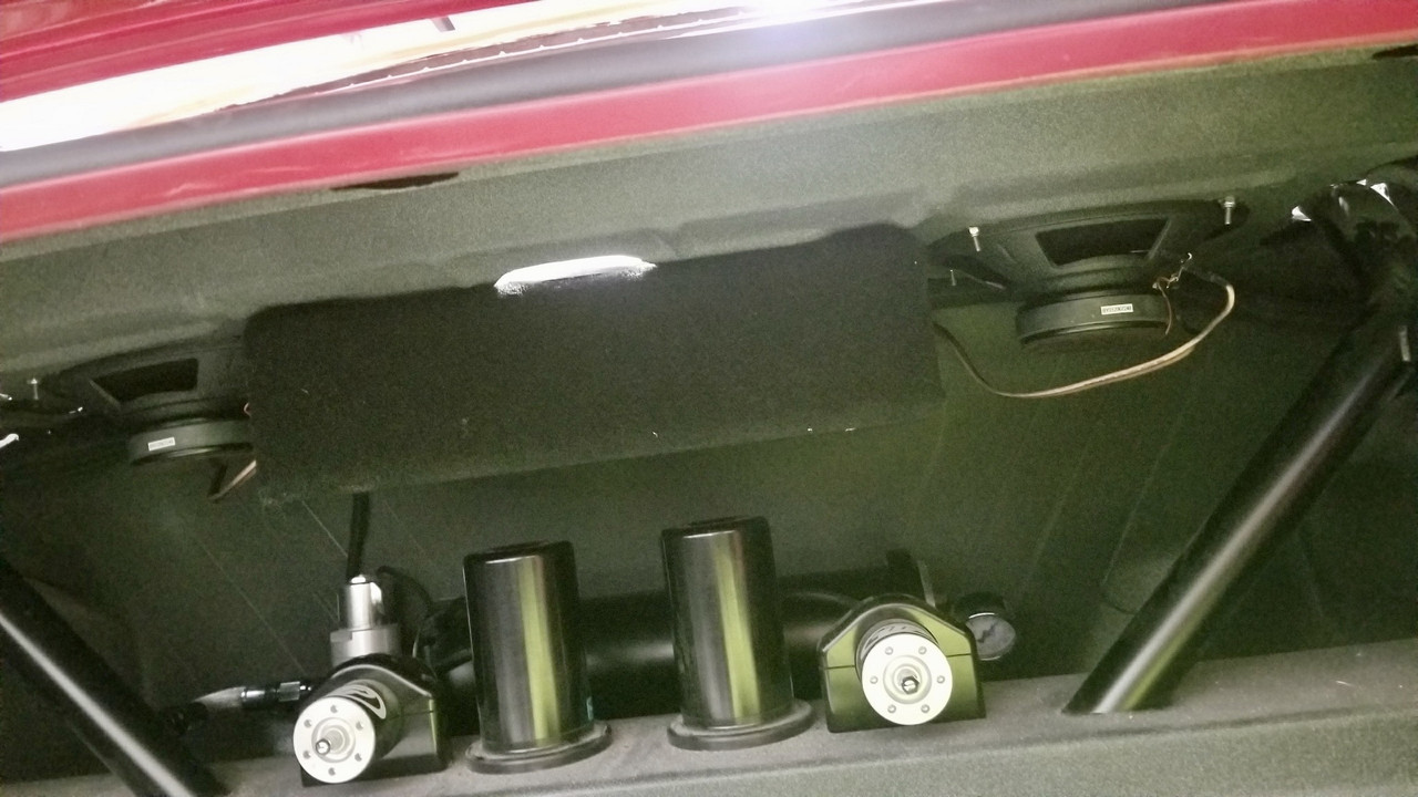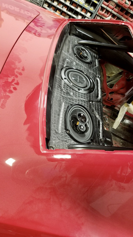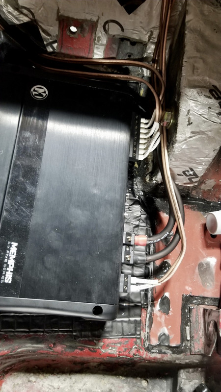 Sound system is basically done. Just a small 8" sub for just a bit of good bass. Using Memphis Audio. Wires are not fully tucked but you get the idea.