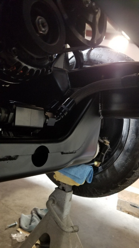 Dynamic Drivelines 3" Carbon Fiber driveshaft which made for a tight fit on exhaust clearance at full droop.