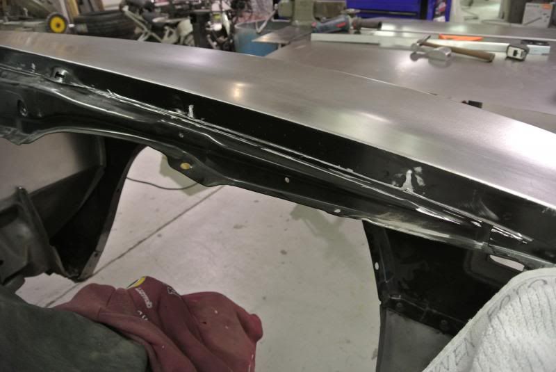 Since we are building complete new inner fenders we deicided to get rid of the crude opening GM left us with and start with somehting nice to build off of...