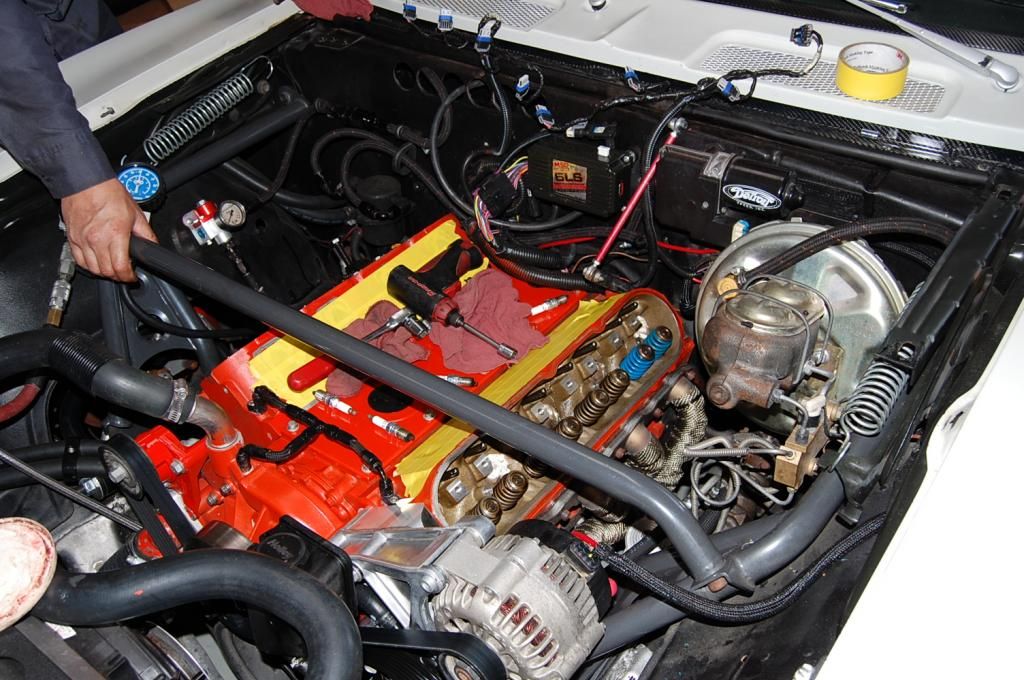 while it was all apart! I had great help from Vince over at Meanstreets Performance and he showed me how to use a really cool pressurization tool and change out the valve springs! along with his comp cams tool, awesome GM performance springs, after a quick lesson, it was my turn, I did get it down to about 5min per cylinder(2 springs)