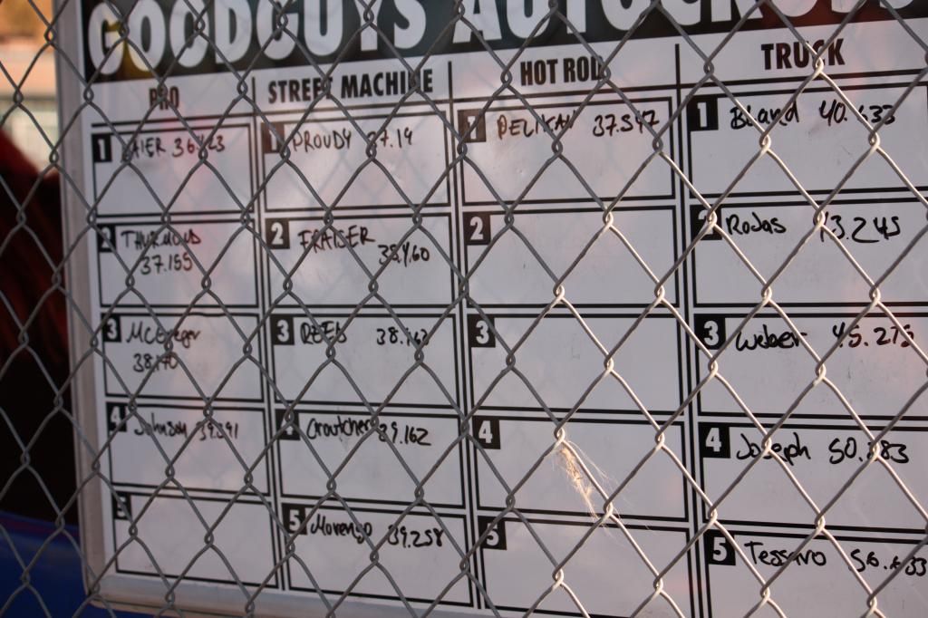 http://i752.photobucket.com/albums/x...ps96ee8442.jpg I got there early and was already far down the line http://i752.photobucket.com/albums/x...ps13158cfd.jpg the morning started a little cold, and I ran my first lap as a warm up pretty fast and was just 5 tenths behind First place, suzy ran the car today also and she was pretty fast to http://i752.photobucket.com/albums/x...psa8c365c6.jpg so I stepped it up on run 2 and took over first place and on run 3 I went even faster and at the end of day one I'm still holding first spot in street machine http://i752.photobucket.com/albums/x...ps7d0a29bc.jpg more tomorrow!!! |