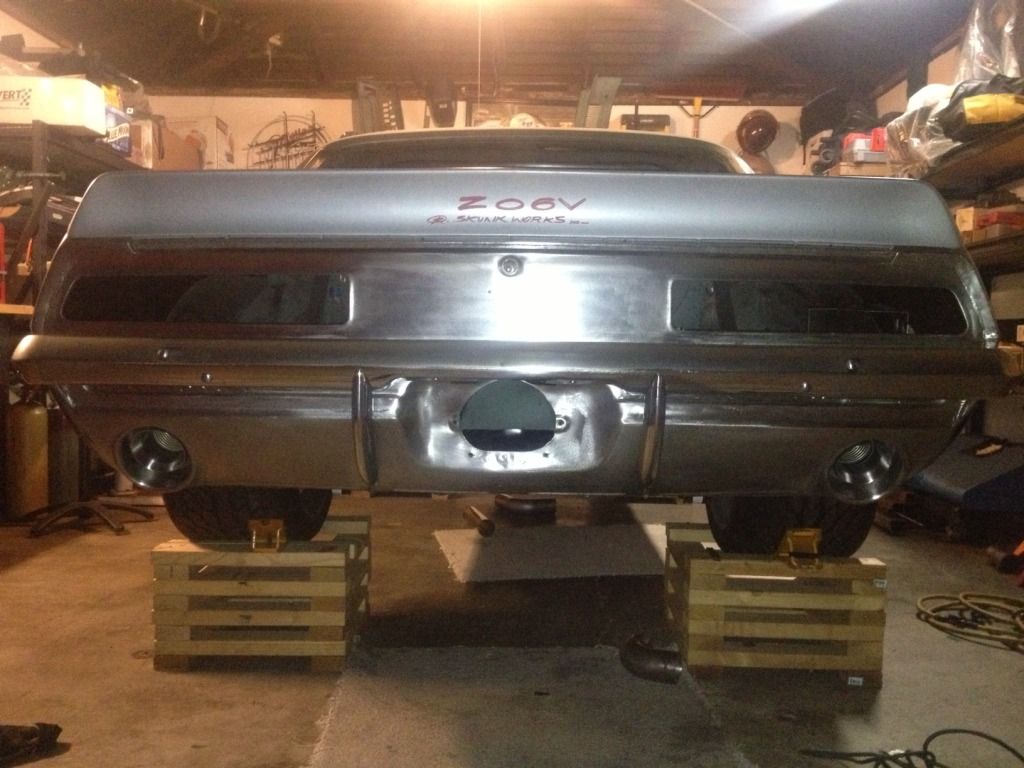 LS6 W Magna Charger T56 magnum close ratio Inland Empire Drive Shaft 3" Magnaflow mufflers wheels are just for mock up. DSE complete sub frame Stainless steel headers Quadra link w 9" rearend & Minitubs Frame connectors Body mounts RS headlight motors MC booster set up Wiper motor Roll Bar Vapor Works gas tank w CTSV fuel pump option RS sport grill kit I got it all in place and cutting and tucking where needed , like RS kit w DSE motors needed a bit of attention to make fit. working on 3" stainless steel mandrel bent exhaust. building it from scratch including hangers from 3/8" SS rod " had fun bending those " using hight temp blue grommets to keep it as tight to the body as possible at some places 1/4". to tight ( only time will tell ). I'm doing a floater style design where Im giving it room to expand "running all hanger rods parallel to exhaust " and using flex pipes @ header collector and exhaust ports. keeping the cuts as tight as possible. finished the exhaust ports. came out really bitching but having second thoughts as to how they are going to react to heat. my plan is to finish car with all the mechanical and structural work done, run it for a while and cut and change accordingly where need it. http://i1232.photobucket.com/albums/.../photo4-10.jpg http://i1232.photobucket.com/albums/...1/photo3-8.jpg http://i1232.photobucket.com/albums/.../photo4-11.jpg http://i1232.photobucket.com/albums/...1/photo3-7.jpg http://i1232.photobucket.com/albums/...1/photo4-4.jpg http://i1232.photobucket.com/albums/.../photo3-11.jpg http://i1232.photobucket.com/albums/...1/photo3-5.jpg http://i1232.photobucket.com/albums/...1/photo1-4.jpg http://i1232.photobucket.com/albums/...1/photo1-1.jpg |