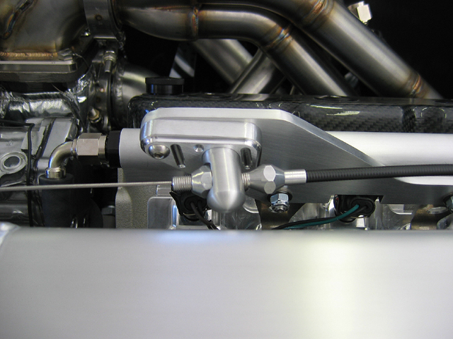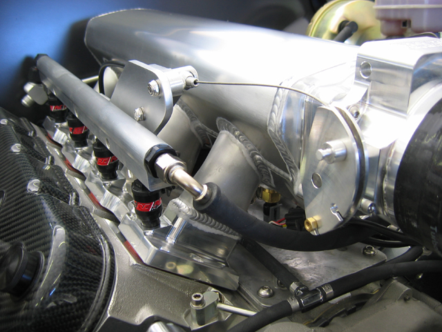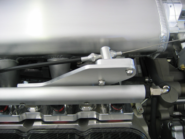 Hooked up the throttle this morning. I own a tig, but can't weld with it................... so I bought a Lokar cable mount and built a bracket to attach it to the fuel rail support. Turned out nice. The cable has a bit of an angle to it, but that's how the Lokar mount is built, and was the only way it was going to fit.