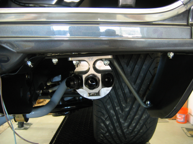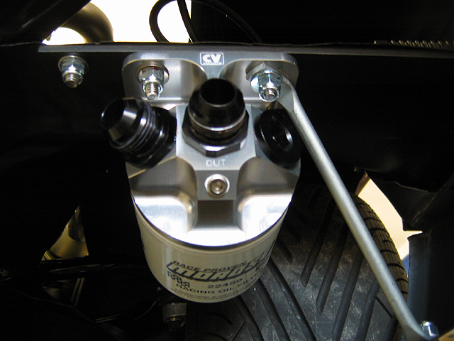 ok, moved the remote filter. Had to build a brace out of 3/16" strap to bolt to the edge of the inner fender to stiffen it up; mounted the filter on that brace and the lower fender brace, completely protected by the bumper when I get it installed.