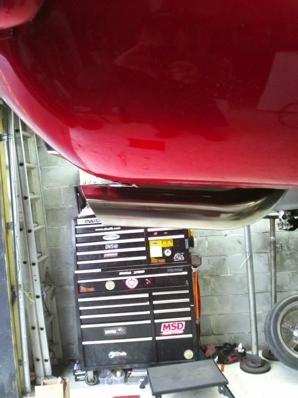 So I ended up having to re-build new tailpipes on my car, the ones I had were having too many issues. These new pipes are 2.5" into 3" tips routed around the G-Link, this is with mini-tubs and a stock width Ricks tank with no dog ears. The custom tailpipes were not cheap but should work alot better now.