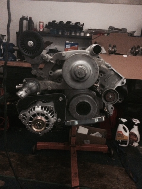 I figure hanging out with Weld is like giving to charity. I'm doing a good thing for the world because new people aren't forced to interact with him.... :weld: :poke: Spent most of tonight filing rings and working on the alternator mount. Here is a pic of the mount as it is. I used some 1/4 plate and have some 5/8x.120 DOM to use as a spacer for the bolts. Plan is the reinforce is back to the block near the motor mounts there is less flexing. I also want to retain the driver side idler pully using an aluminum spacer i will fab and add an idler pulley near the mount closest to the center of the engine. I think this will give me maximum wrap of all pulley. To clear the thermostat housing I am hoping a manual adjuster like this one (https://www.texas-speed.com/p-2838-a...r-wpulley.aspx) will move the pull to the center an down enough to clear. Luckily Texas Speed is now local so I'll try to pick one up tomorrow. Attachment 50144 |