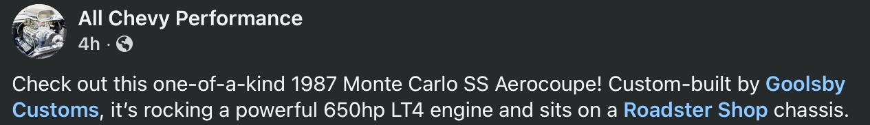 The video on that car done by Autotopia LA was a good one. I think there is language especially when a homeowner is mad at them for all the flyby noise, so I didn't embed it.