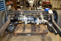 http://www.hotrodjim.com/immages/pro.../logo_crop.jpg Fred’s 1956 came to him as pretty nice car but after selling his C5 Corvette the Old 350 and power glide just didn’t impress him anymore nor did he really trust it any more. We’re first outfitting this 56 with our Stage 2 Rolling Chassis so we can toss some custom tweaks to the frame for the turbos. With the corvette suspension this car will now have power rack and pinion steering, all wheel disk brakes, QA1 coil over shocks, IRS suspension and our front sway bar upgrade. To Power the new chassis we were looking for power without breaking the bank. So we started with an LS1 and T56 from a 2000 Camaro. For less than 4,000.00 we now have a LS motor, T56 transmission, pulleys with power steering pump and AC compressor, a wiring harness we can rebuild and some exhaust components to start with. Fred wanted about 500 HP and he was looking at LS7’s and LS3’s but once you got the 5,000.00 motor now your looking at a custom harness for at least 1,000.00, 1,500.00-2,500.00 in pulleys and you still don’t have a transmission flywheel or clutch. So we’re going to huff a little more power in this bad boy with a custom STS Twin Turbo System pushing 5-7 PSI and giving us about 500 at the rear wheels and we’ll also get better gas mileage too, 28+ on the highway. Some photos of Freds 56. We’ll be going to pick the car up and bring it back to Hot Rod Jim’s so we can swap it over and re wire the car. http://www.hotrodjim.com/immages/pro...ate_01/s-1.jpg http://www.hotrodjim.com/immages/pro...ate_01/s-2.jpg http://www.hotrodjim.com/immages/pro...ate_01/s-3.jpg Here’s Fred’s Chassis as it would be delivered to a customer who ordered our TriFive Stage 2 Rolling Chassis with Fred's LS1 and T56 sitting in it already. http://www.hotrodjim.com/immages/pro...ate_01/s-4.jpg http://www.hotrodjim.com/immages/pro...ate_01/s-5.jpg -Russell Alexander |