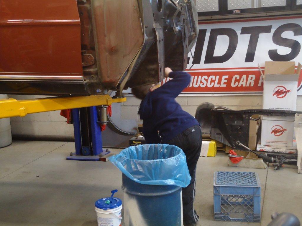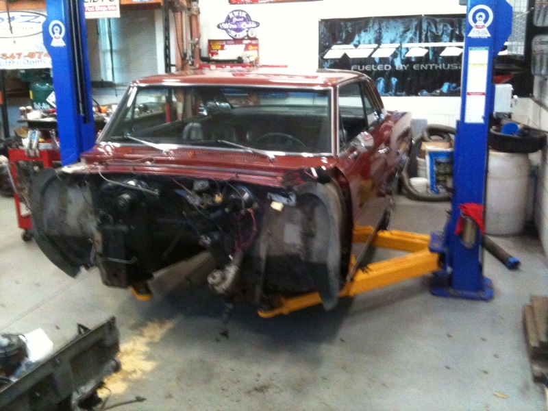 Hi everyone been really busy with other projects but here are a couple pictures of the underside of the Nova & some help from Dylan my son (the "D" in D&Z Customs LLC.) cleaning things up getting ready to paint fire wall, radiator support, & new Heidts inner fenders.:)