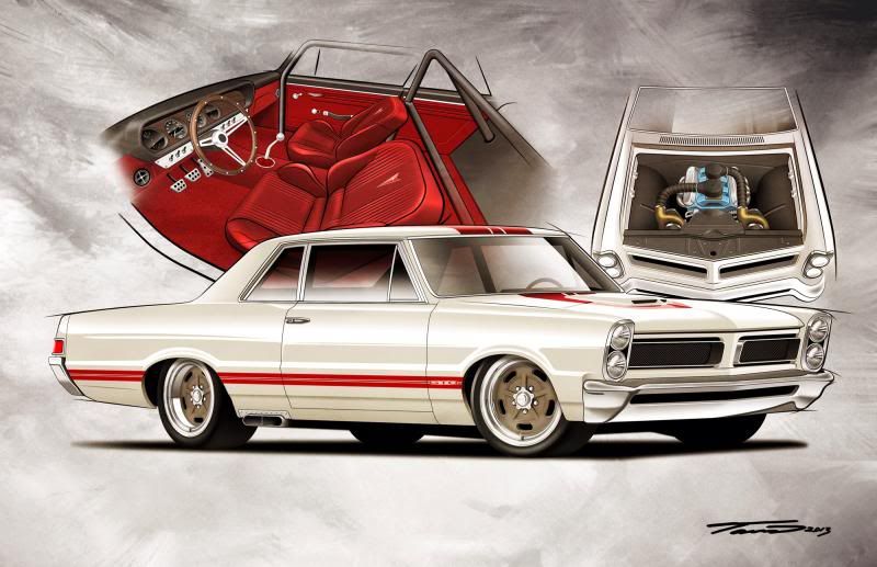 This is going to be like deja vu for some of you. Any one that followed us on our last big build remembers my black 65 convertible. I will say we have built some fun cars In the past couple of years but this one should beat all of them. We are building a 1965 Pontiac GTO clone hardtop For my father he is 66 years old and has waited almost 50 years for A 1965 Gto. When he was a freshman in college his buddy wanted a Gto "This is fall of 1964 mind you" his dad told him you make straight A's for A semester I will buy you a brand new 1965 Pontiac Gto. Well he made straight A's. In January 1965 he came back to Stanford with a Montero red tri power 4 speed Gto with a black interior. My dad his buddy and two other friends went cruising down university ave in palo alto ca. As my dad describes it " it was the fastest car I had ever been in up to that point and I knew I had to own one. Well I feel it is only fair after putting your family first for years it's your turn to have some fun. Now we are not building a stock Gto I couldn't do that. The following parts and prices Willard there way on to the car: RS chassis with IRS 1999 lq4 block turned into a 408 with a f1c procharger T56 magnum 6 speed Vintage air A/C And the list goes on. http://i122.photobucket.com/albums/o...to/image-1.jpgIMG http://i122.photobucket.com/albums/o...to/image-2.jpg |