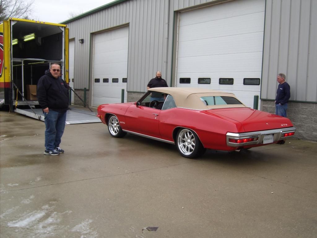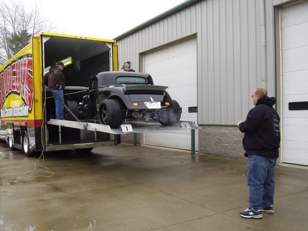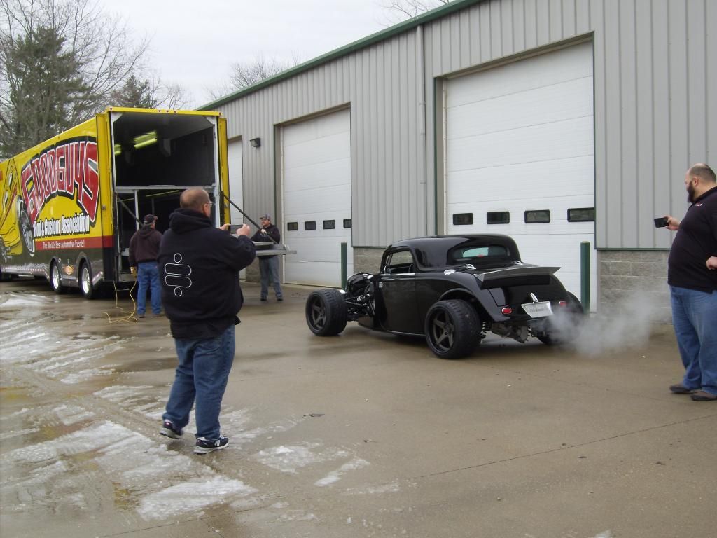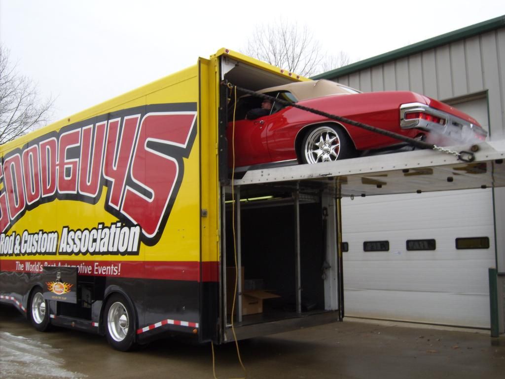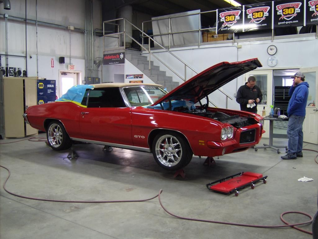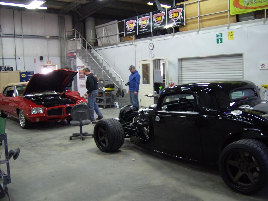 I had a chance to visit Grouchy and the Goat today before they head out to AZ and Barrett-Jackson on SPEED, the Grouchy the 33 looks good wearing the new shiny suit and they were both staying warm in the RideTech body shop and the Goat had her paint fully polished and last minute ride height adjustments here's a couple shots of the girls sitting around