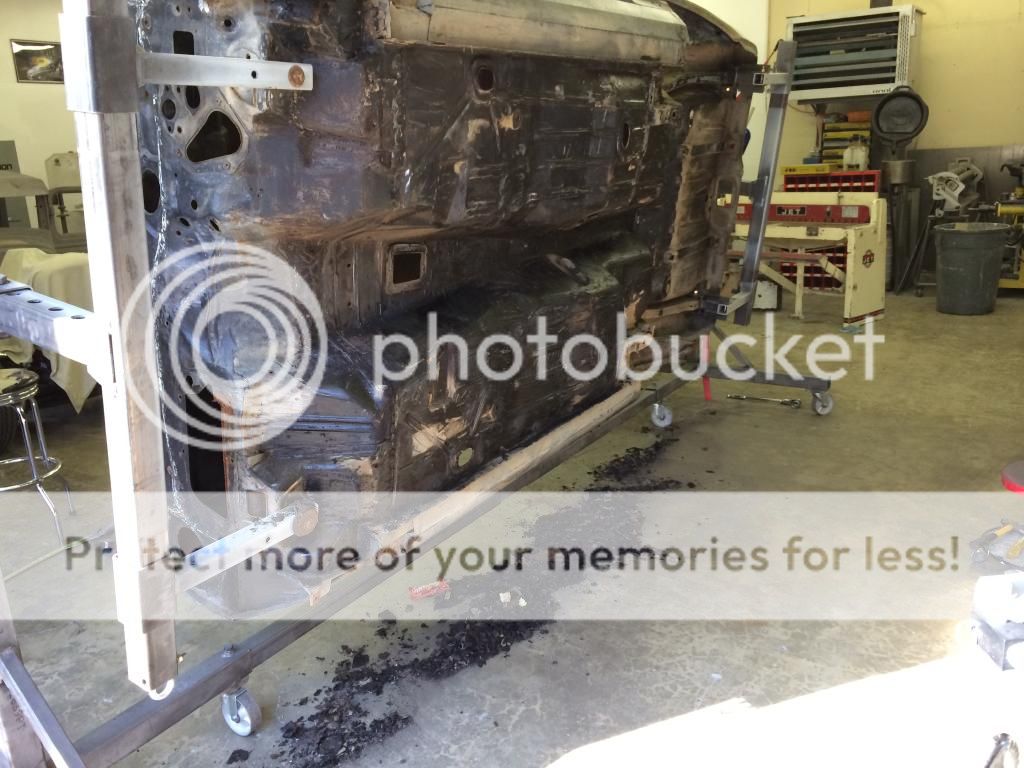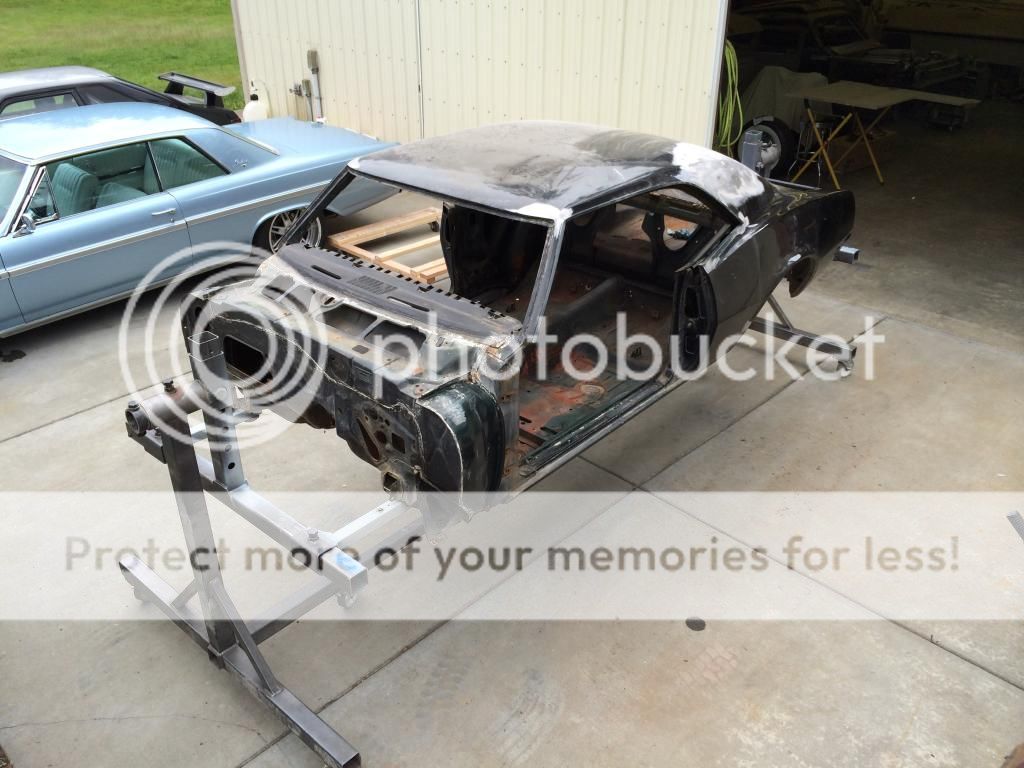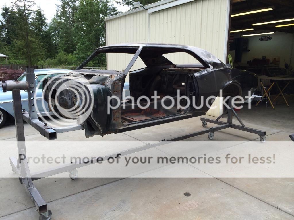 Its getting a DSE front clip, Art Morrison IRS, 427 BBC with an early corvette tripower, and a 5 spd. Should be a fun build! Heres where we started: http://i461.photobucket.com/albums/q...B339C9BB40.jpg http://i461.photobucket.com/albums/q...E3364E1C5B.jpg The body was very clean! The worst part of the car was the colony of mice that lived in it throughout the years... We found rust in very unusual places. http://i461.photobucket.com/albums/q...E196FE32B0.jpg The glamorous part of building cars... Scraping undercoat for a day... Thank God for the rotisserie! http://i461.photobucket.com/albums/q...A21C1A9FE9.jpg We got the main areas of the car blasted, and mounted it to the frame table. I was pretty surprised to see that the body was twisted about 1/2"! An easy fix now, but could have been a nightmare! http://i461.photobucket.com/albums/q...B1067147DA.jpg |