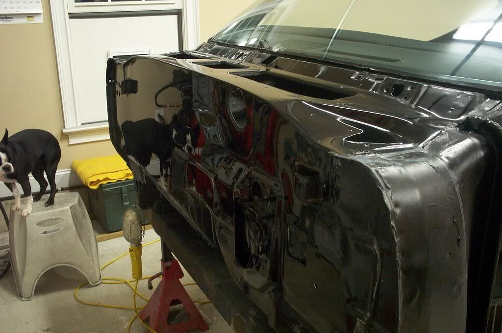 Spent Sunday finishing up the firewall area. Black is definately a tough color as it shows any issues you have, but it looks great and is a natural for a Muscle car. All and all the firewall turned out good.