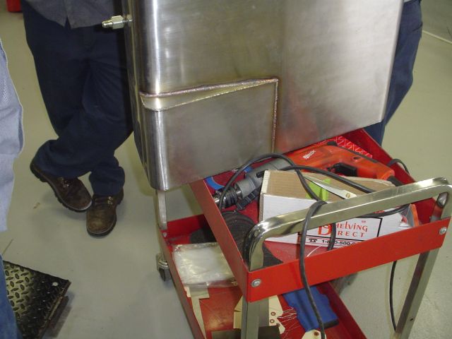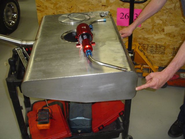 Looks like we're finally good to go. We ran the engine yesterday morning inside the shop and everything seemed fine. Then, during the test drive, we noticed sudden/periodic loss of fuel pressure during cornering or accelerating maneuvers. Upon further inspection we discovered a leaky weld in the polished stainless steel tank, but nothing outwardly causing the fluxuation in fuel pressure. We need to maintain constant 60# fuel pressure, but without warning the pressure would sometimes drop to 35# then slowly [about a 10-count] rebuild pressure to 60#. After much debate [and even some arguing], we decided to remove and inspect the in-tank A-1000 fuel pump check valve. After opening the fuel tank inspection plate to remove the pump, we noticed the suck end of the fuel pickup tube had snuggled tightly against the bottom corner of the tank that appeared to inhibit unfettered fuel sump. The pump and check valve checked out fine, so we cut the fuel tank open and welded in a containment sump and rerouted the pickup tube accordingly. Just an hour ago we test ran the motor, then took it outside and rodeo'd the crap out of the Velle from idle to WOT and it held 60# pressure throughout all phases of operation...whew. It's now on it's way to Colin's Pre-HRPT party/BBQ in Milwaukee to be handed off to Jody and Scott for the long haul tour. I have a few pictures that better portray the above fuel tank problem and fix, so I'll email them to Scott to post this afternoon [I hope he's still around his PC at home]. I hate the 5-6 days before Power Tour when a new build car is coming out for the first time! :willy: