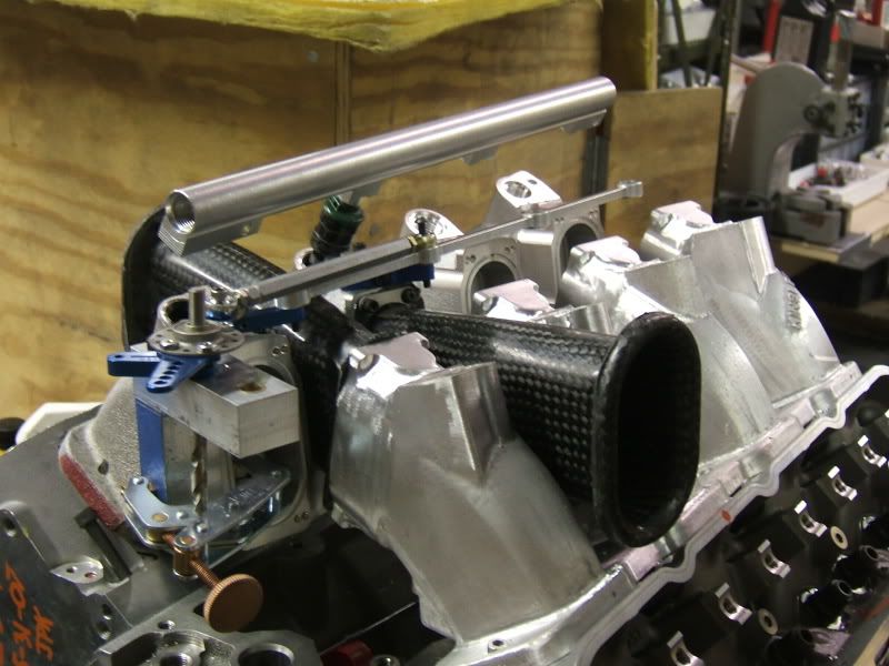 If I'm not mistaken, the very top photo is a set-up that was in the Barry Grant booth at SEMA. The manifold was a total mock-up. The runners were solid!
