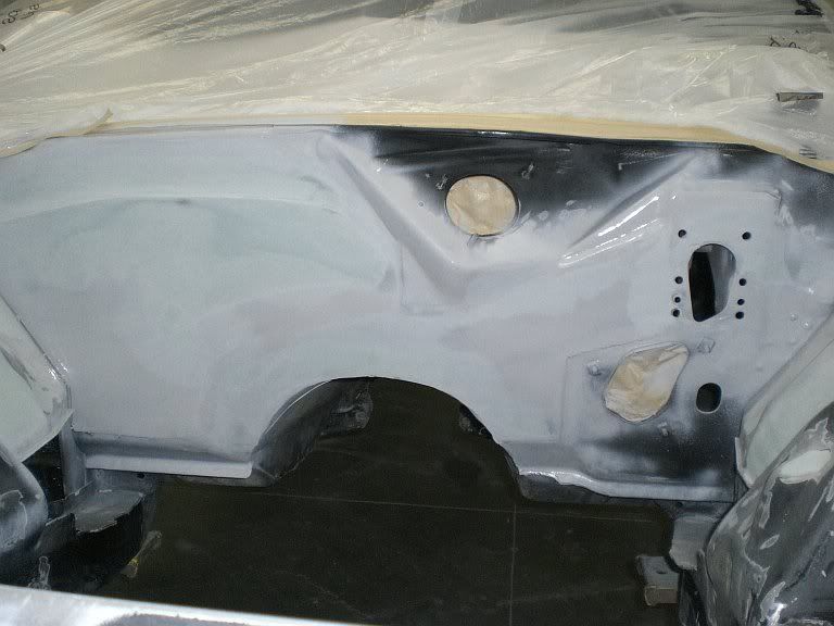 Well heres what my easter weekend consisted of more engine compartment hell but I finally got it painted its a dark charcoal with semi gloss clear