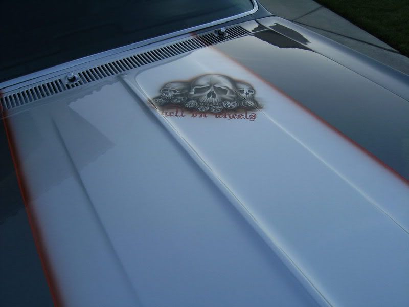 I love the style of the skulls and the play on words w/ the rims under the skull, very creative. Is this car in the "projects" forum? I didn't see it. al |