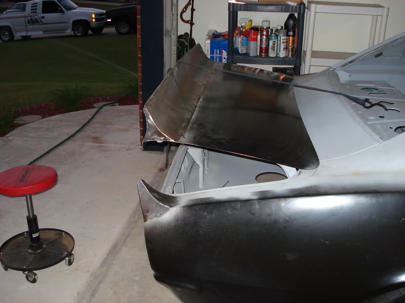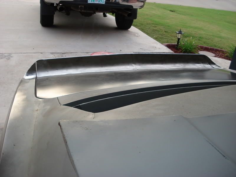 I have been hanging the sheetmetal the past couple nights on my spoiler, here are some pics. I still have a couple more pieces to make and alot more welding/grinding on the seems. Overall I am very please with the results.