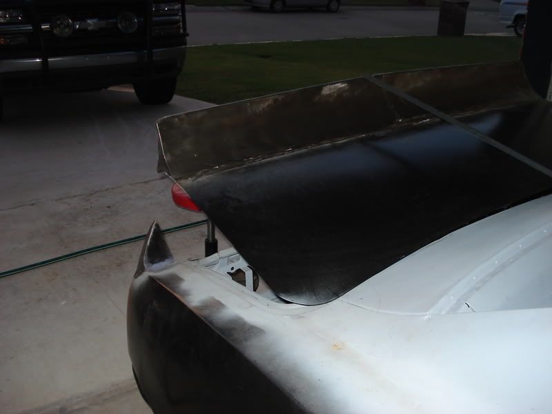 Alright it has been a while since I have been on here or even able to work on my car. We just bought a house, so I haven't really had any time for my car in the past couple months. here are some undated pics of the finished spoiler. I am waiting on the rest of my tranny parts and then I will put the motor and tranny in and start on the exhaust.
