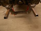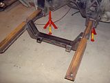 Got started on mocking up the front framerails yesturday. Need to do a little more adjustment before they get some more tack-welds. Then i will mock up the entire front and fenders in order to make sure that everything fits perfectly before welding them solid. And then it is on to the Mustang II components that needs to be welded in. Hopefully it will not be long before i have the controlarms etc. Then i will be able to put the car back on the ground and see how it looks.