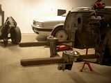 I have not made that much progress the last couple of days, have been moving a bit around in the garage instead. But yesterday I measured the distance for the spacers that I will need to mount the rear wheels. Also took a couple of pictures - just for motivation. Though without the engine and transmission mounted the front sits quite i bit higher.