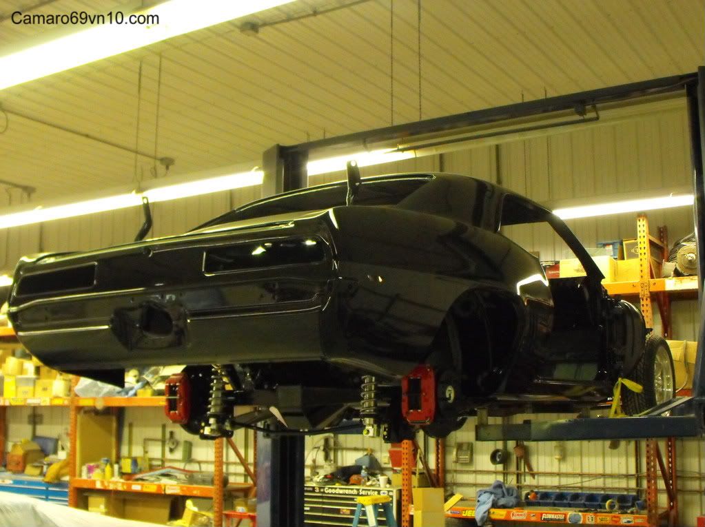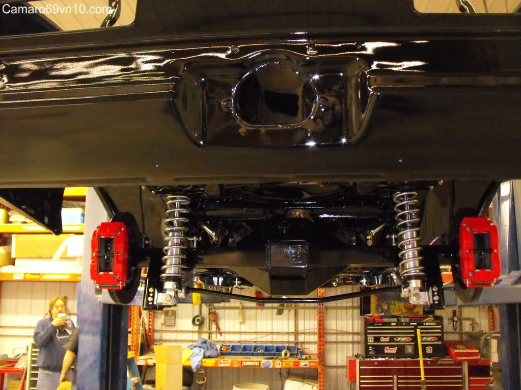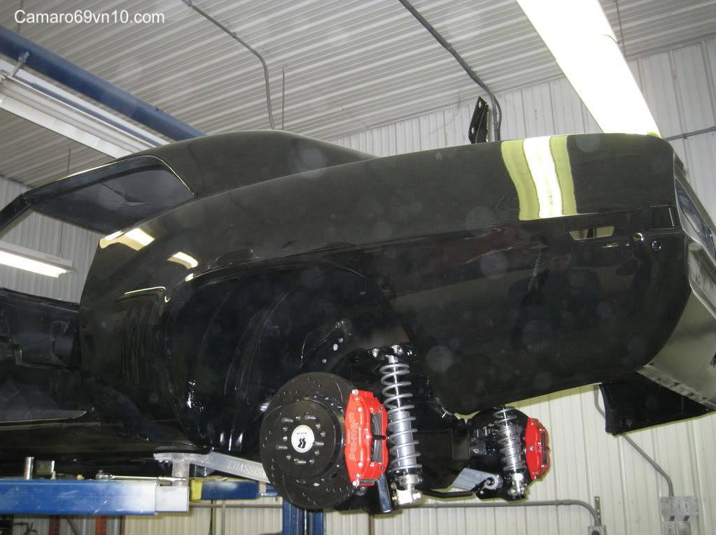 I was on leave last week and got a chance to stop by the shop and checkout the progress of the build. The basecoat was shot and the new Chassisworks g-link / FAB housing with 14” disk breaks were installed.