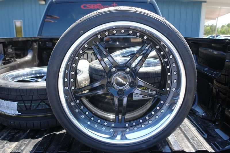 Wheel Specs Forgeline SP3 with Nitto tires Front 19x10 with 285's Rear 20x13 with 345's I'll get a ton of pics tonight http://i120.photobucket.com/albums/o...s/DSC02288.jpg http://i120.photobucket.com/albums/o...s/DSC02287.jpg |