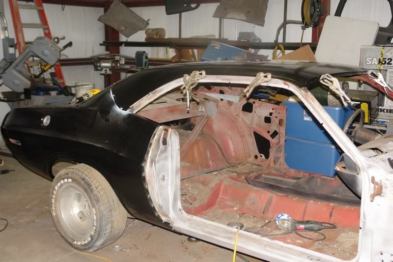 All I got to say is Dodge could have had a much faster car back then if the doors didn't weight 200 lbs each, and have 150 lb hood. Tomorrow the motor and tranny comes out ad the rest of the interior. My buddy will be here after luch tomorrow with his mobile media blast system to blast the car. She'll be in bare metal tomorrow and ready for cutting!! |