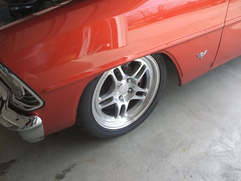 The wheels look great on there. what are the specs for them ? tire sizes and Backspace? Rear end length? You mini tubed just up to the frame rail right? You definately have one of the best looking Novas out there now. Sweet car |