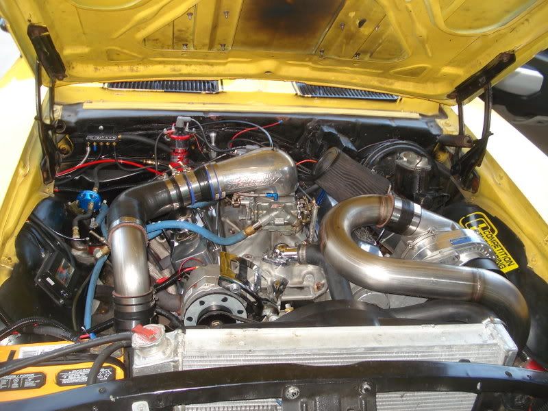 while we're at it, has anybody got pics of a procharger on a Big block in first gen... I'm considering this and am a bit concerned with how i'm going to fit it in there with a standard height cowl bonnet. Most likely not going to run an intercooler with my setup.